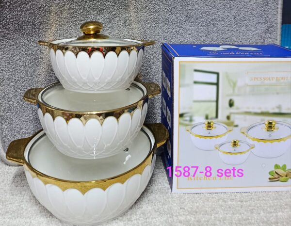 8 Pieces Set – Includes assorted pot sizes with matching lids
